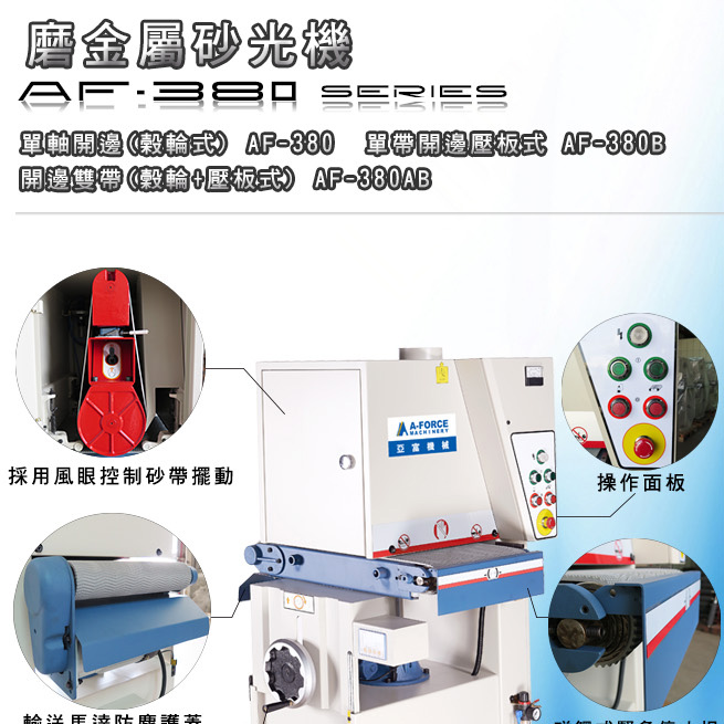 磨金屬砂光機 AF-380B(壓板式可降低磨砂表面砂帶接痕)