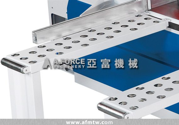 - 入料工作台為滾輪式設計,使板料入料更輕巧、不費力。