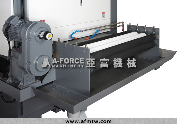 Variable Feed Speed The machine employs a belt-type variable speed mechanism. Variable feed speed range is from 3.5~9 M/min, making the machine suitable foe grinding various steel plate materials. |